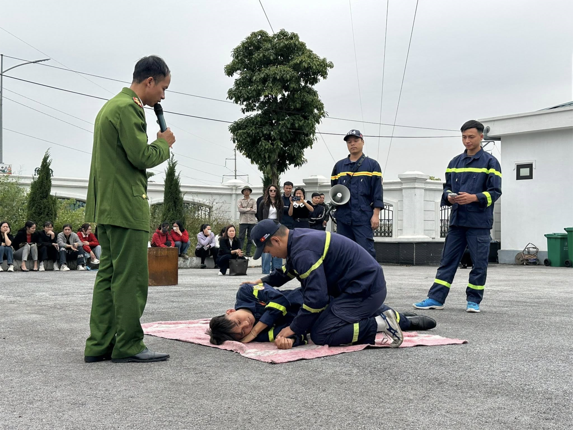 Thực hành dập tắt đám cháy giả định và thao tác cứu nạn cứu hộ.