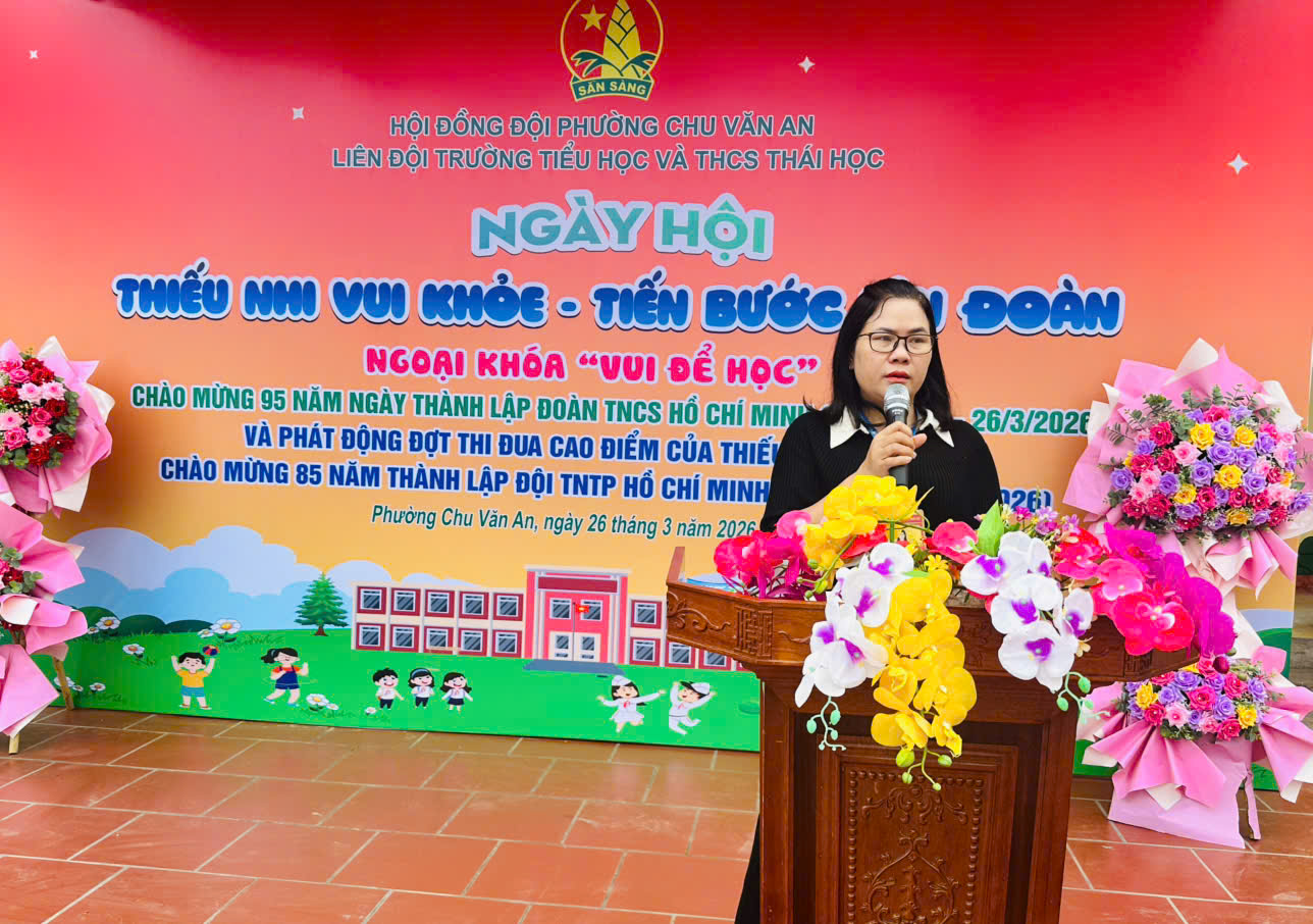 Sáng ngày 23/3/2026, trong không khí rộn ràng của tháng Thanh niên – tháng của lý tưởng, hoài bão và khát vọng cống hiến, Liên đội Trường TH&THCS Thái Học đã long trọng tổ chức Ngày hội “Thiếu nhi vui khỏe – Tiến bước lên Đoàn” nhân dịp kỷ niệm 95 năm Ngày thành lập Đoàn TNCS Hồ Chí Minh (26/3/1931 – 26/3/2026).